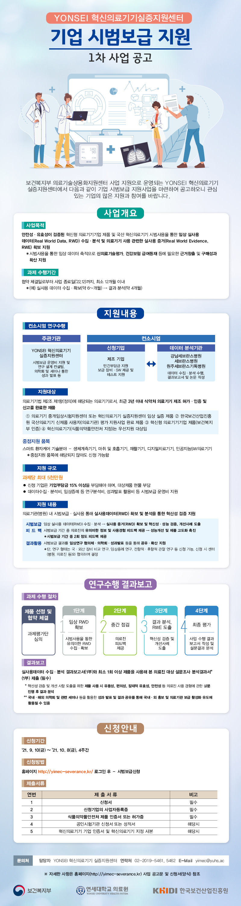 보건복지부 임상연구 인프라 조성사업 지원으로 운영되는 YONSEI 혁신의료기기 실증지원센터(강남세브란스병원, 세브란스병원, 원주세브란스기독병원)에서